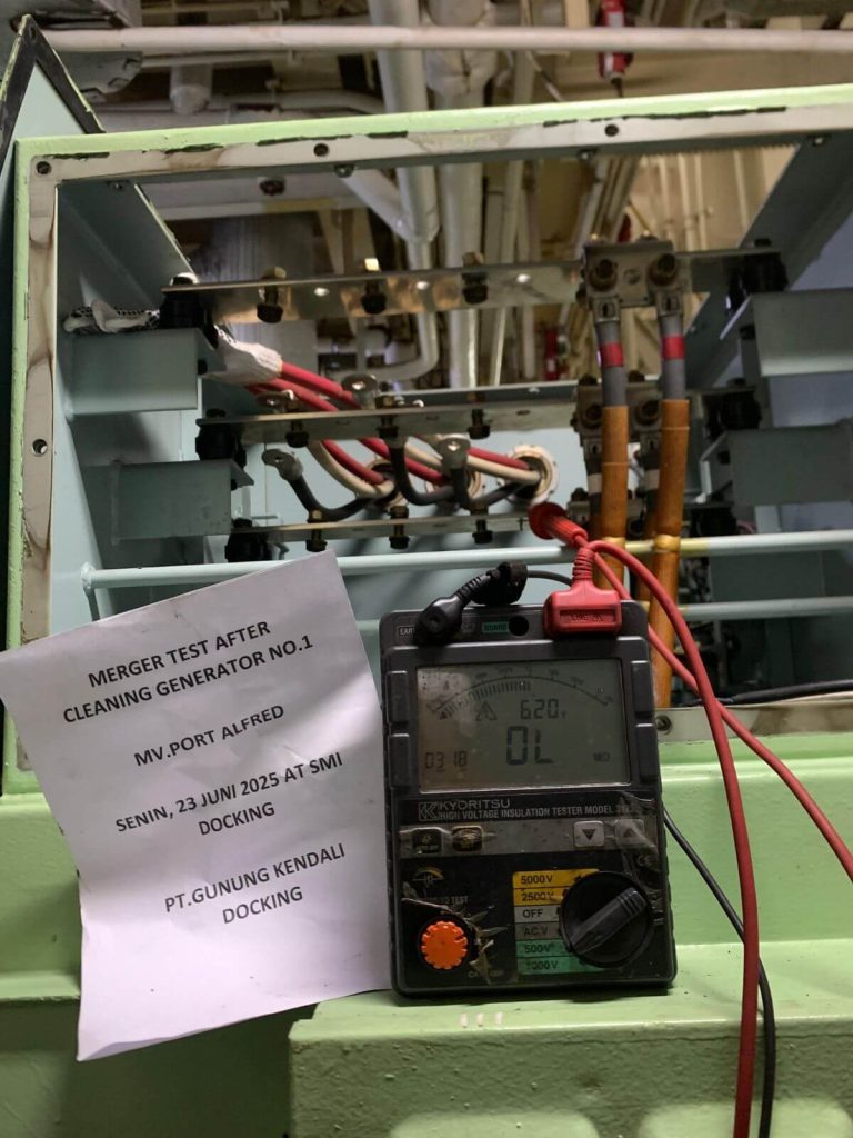 Cleaning the auxiliary engine alternator on the MV Port Alfred is a crucial part of preventative maintenance. With proper procedures and performed by experienced technicians, the reliability of the ship’s electrical system can be significantly improved. This step is also key to avoiding downtime and enhancing operational safety.