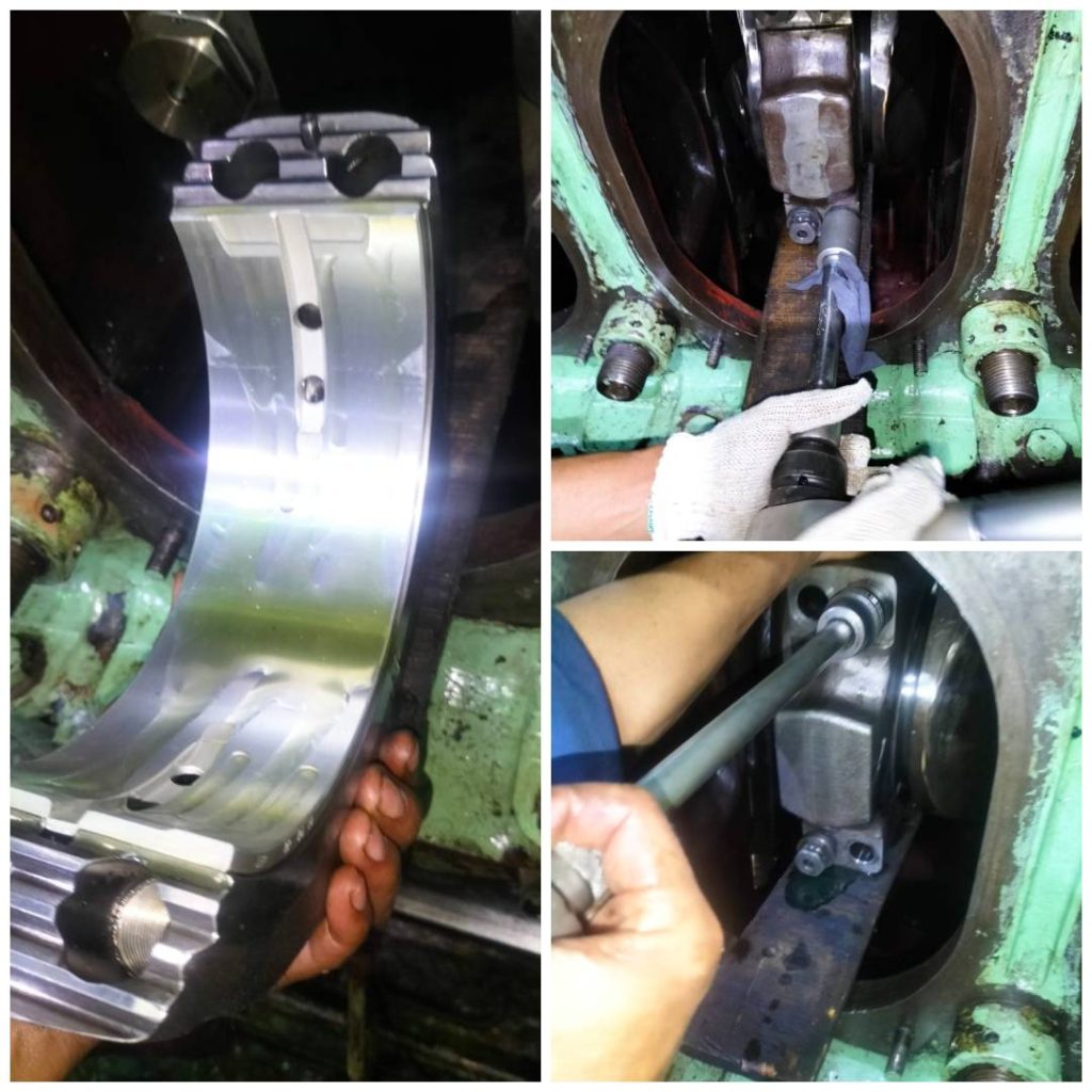 • Inspecting main bearings and crankpin bearings to detect scoring or overheating.